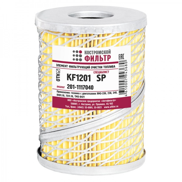 Фильтр топливный KF1201 SP (201-1117040 А, ЭК.02) (КОСТРОМСКОЙ ФИЛЬТР)