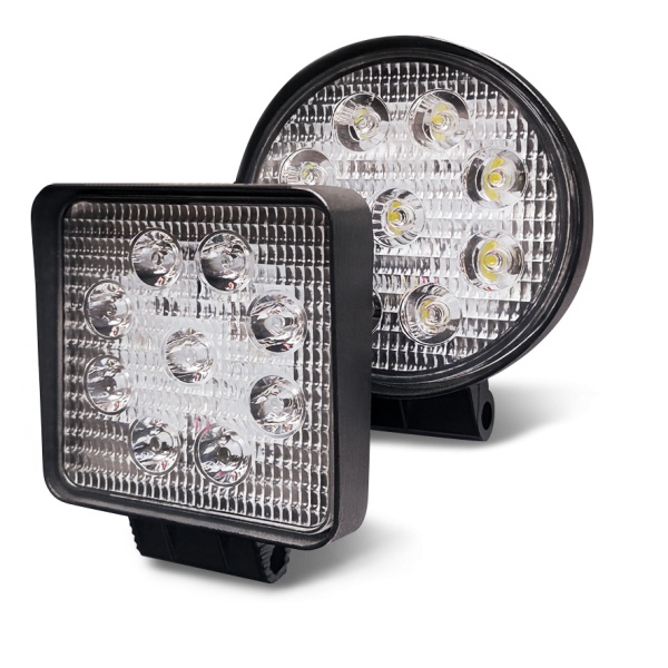 Фара квадратная, рассеиваемый свет, 9 диодов, 27W, (108x108x50) 12/24V ( Упак. - 25 шт. )